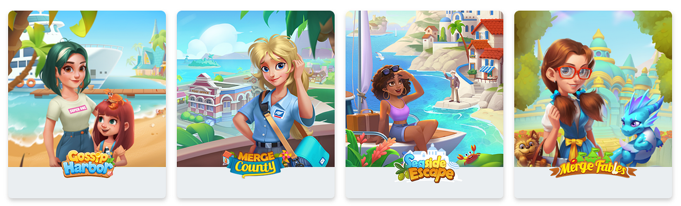 目前,柠檬微趣已同步推出了《Seaside Escape》《Merge Fable》《Merge County》以及《Flambe: Merge and Cook》等多款合成游戏,分别围绕海岛度假、奇幻童话、城镇建设与美食烹饪等差异化主题展开。这种策略不仅体现了其对合成玩法与不同题材、场景结合可能性的快速试错,也反映出其意图通过产品矩阵覆盖更广泛的用户偏好,构建品牌在该品类的综合影响力。