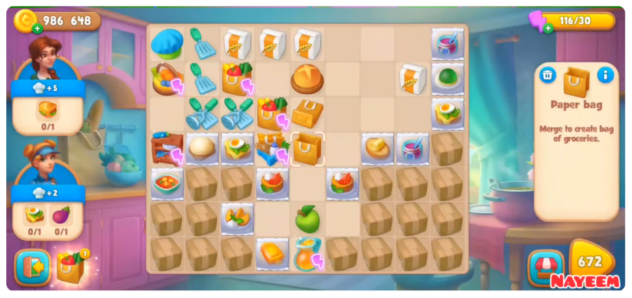 游戏的核心机制是:玩家需要完成特定任务,这些任务要求提交专属物品。玩家拥有一个放置生成器的棋盘,通过生成器产出基础物品,再将其两两合并,逐步合成任务所需的高级物品。当某个任务的所有需求物品都在棋盘上齐备后,玩家即可提交订单,完成任务。