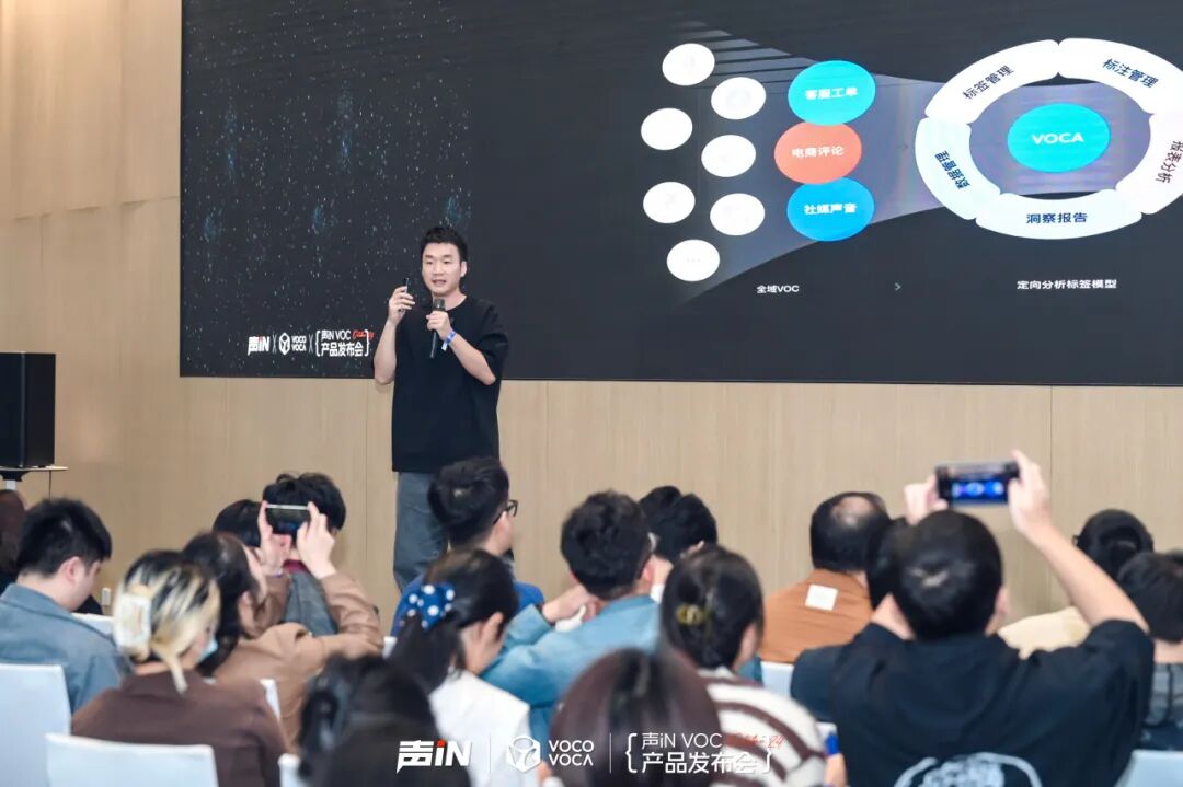 声 iN 产品负责人 刘翔,带来了“全域 VOC 智能解决方案”发布,正式公布 voco / voca 两大核心产品矩阵。