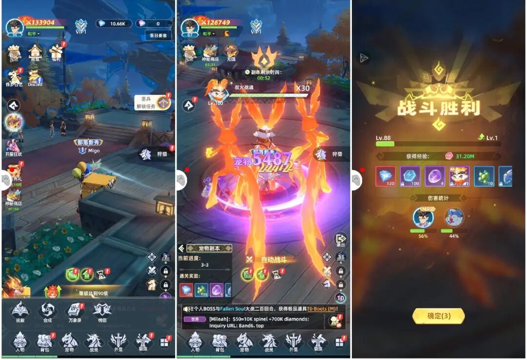 再有,游戏前期的节奏也比较快,短时间内就可以升至100级。在这个过程中,游戏通过数值爆炸的战斗画面、不时弹出的装备/卡牌以及应接不暇的任务和活动,从视觉上给用户带来一种爽感或忙个不停的充实感,尽管实际并不需要怎么操作。