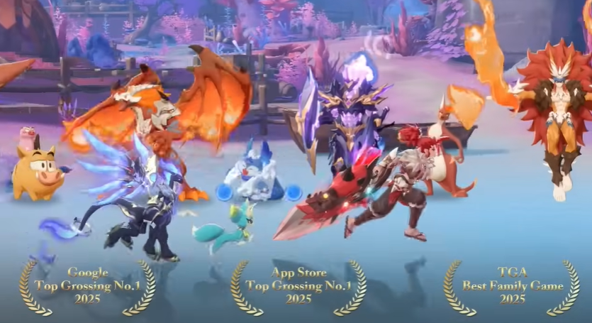 《Huntopia》还通过给自己颁发各种奖项来迷惑玩家(这种套路已是出海产品的常规操作),包括但不限于「2025年度MMO」「2025最治愈游戏」「2025收入最高游戏」「2025最具创意游戏」「2025最火狩猎冒险手游」。