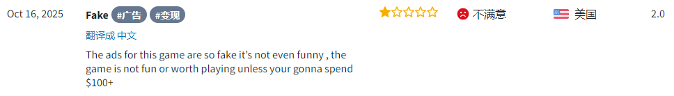 该产品还会标榜自身是「吸血鬼生存题材」「可创建barbarian角色」,或是通过美女擦边内容来吸引用户眼球。这些操作的确在一定程度上提升了游戏的曝光度,也拉动了下载量,但实际上与《Huntopia》的内容存在明显偏差。由此也引来了用户对其虚假宣传的质疑,还有用户吐槽游戏毫无自由度,纯粹就是无脑点点点。