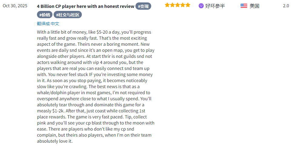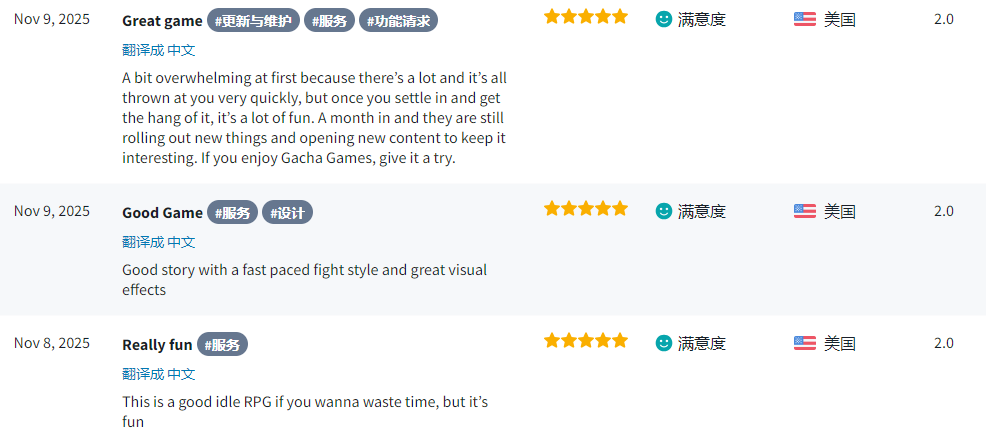 许多美国用户可能不常接触此类买量型MMO,在体验后给出了简单易上手、轻松有趣、内容丰富的评价。