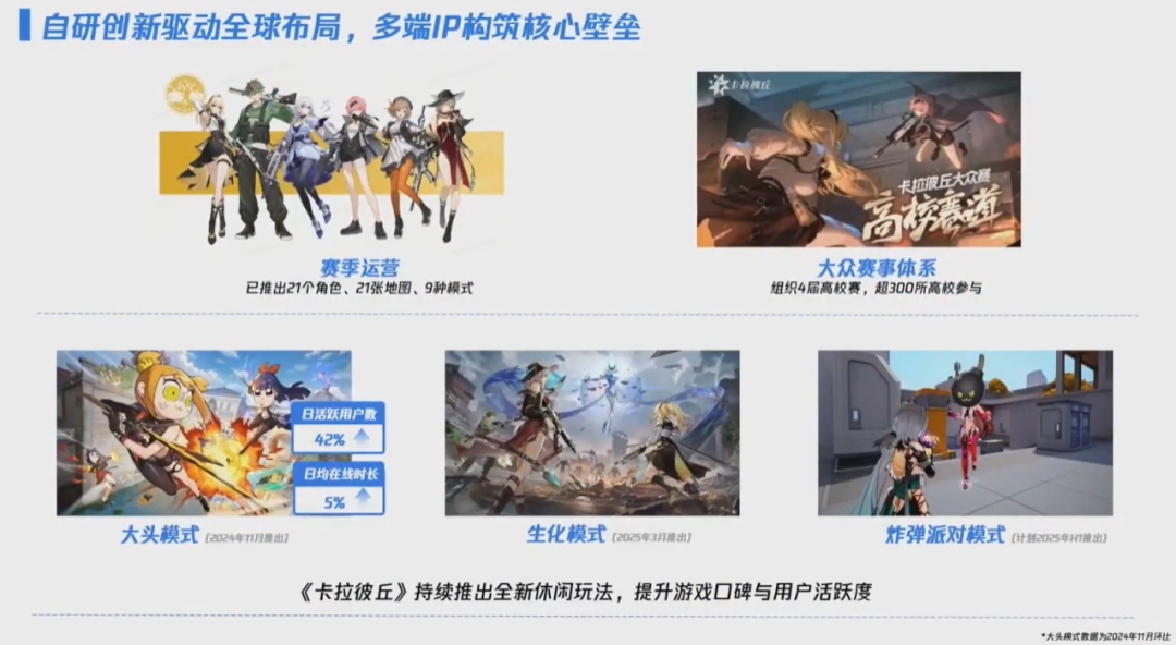 另外,公司对游戏的定位也有所转变。以端游国服为例,最初主要模式是爆破模式,在体验上有着较高的门槛。今年收回运营权之后,研发团队首次走到用户面前,基于用户反馈,将研发重心放在补充《卡拉彼丘》的休闲玩法,据称口碑不错且有很多用户回流。