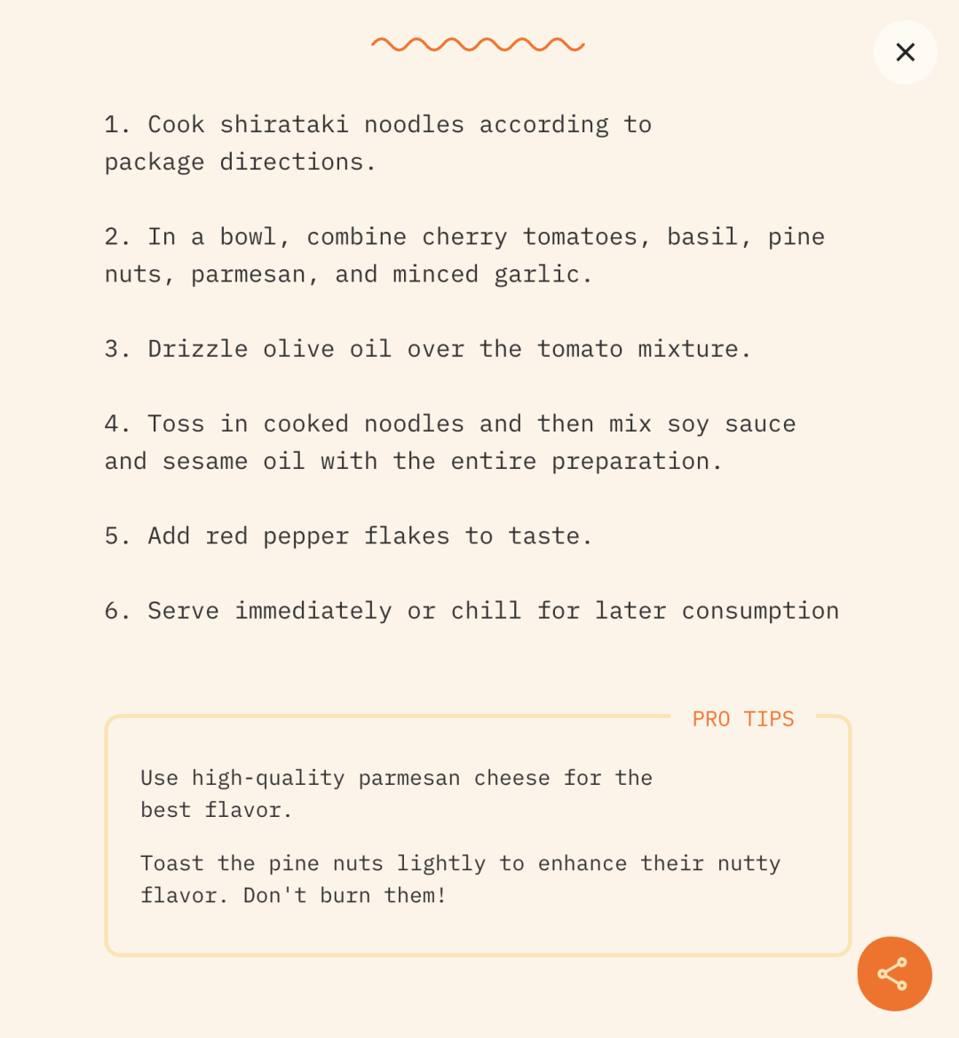 实在没头绪也可以随机生成,获得灵感。勾选vegan(素食者)、gluten-free(无麸质)标签,AI会生成符合更饮食偏好的版本。