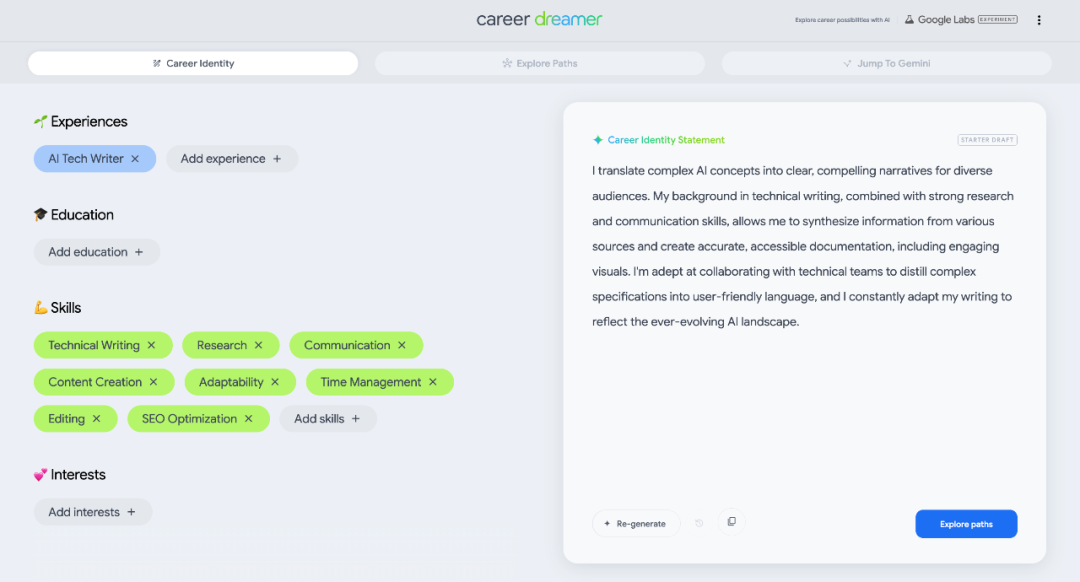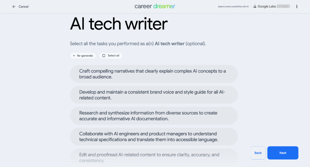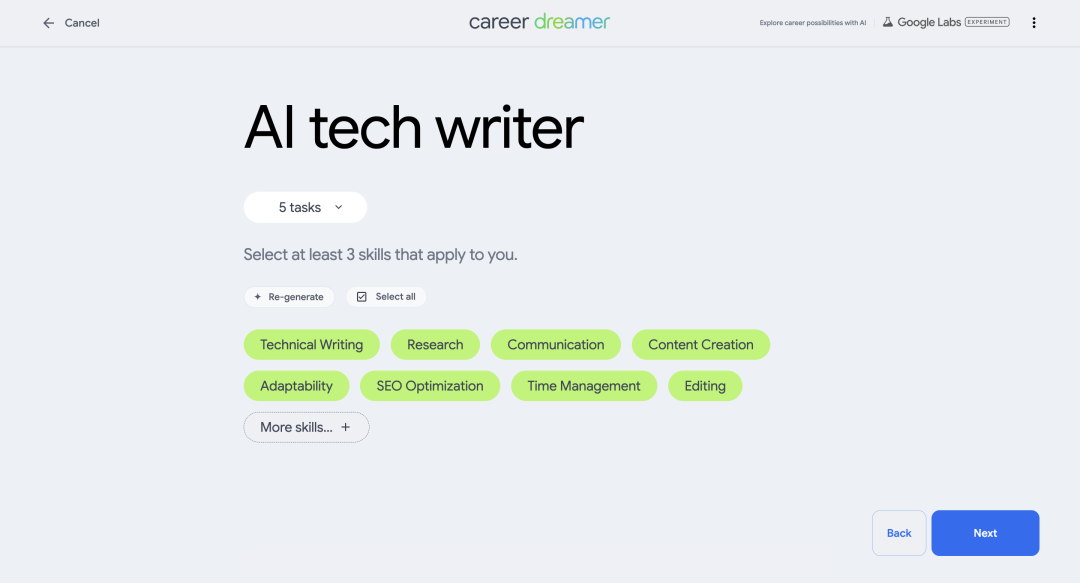 Career Dreamer就是一个旨在帮助用户基于当前或过去的职业经历,探索可能的职业路径的AI工具,使用流程很简单: