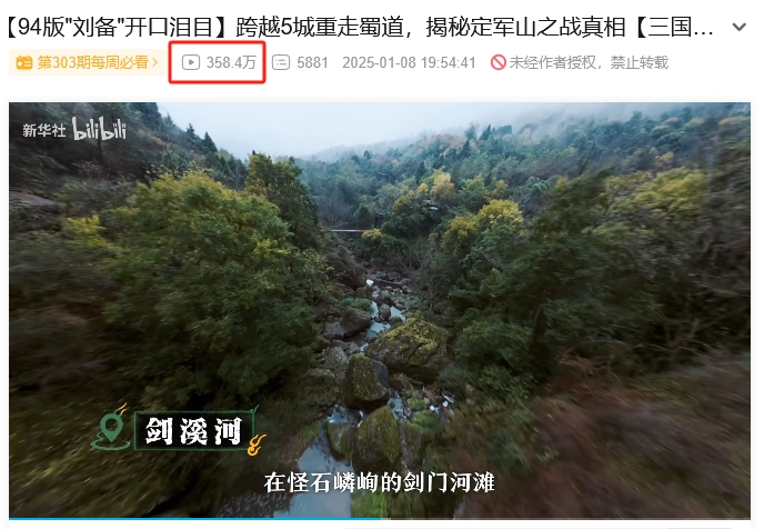 就拿近两年来说,《三战》结合游戏版本主题联合推出的《一夜古法筑冰城》、《重走蜀道运粮路》记录视频,都成了B站三、四百万播放量级的出圈爆款。