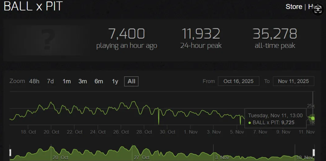 今年10月,一款独立新游《BALL x PIT(球比伦战记)》登录Steam。迅速凭借极具想象力的“弹珠系统”、快节奏的游戏循环,以及极高的可重玩性成为了玩家口中的“爽游代表”。在Steam上获得了超过90%的好评率,首周在线人数突破万级。