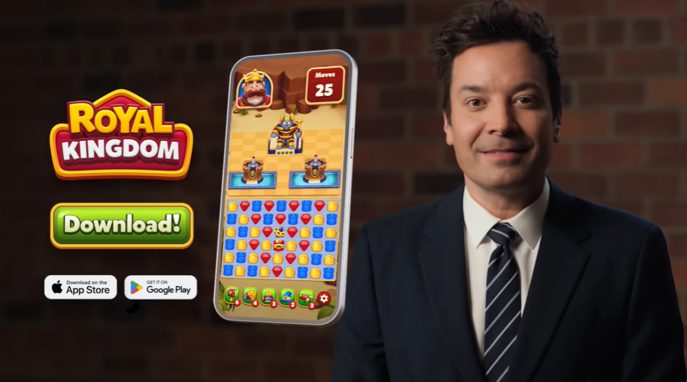 《Royal Kingdom》在推广素材中也结合了每位明星的特征来制作内容。比如吉米·法伦是以脱口秀的形式来介绍《Royal Kingdom》和前作的不同,詹姆斯则围绕着「假装阅读」「手指运动」的创意来展示游戏亮点,其他演员明星则大都采用了情景交谈的方式进行演绎。
